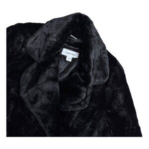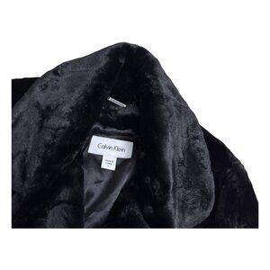 CALVIN KLEIN Faux Fur Luxury Designer Soft Black parka Coat Womens Large