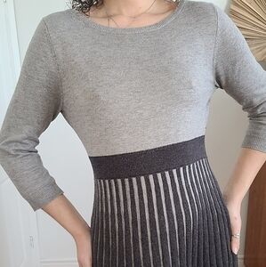 CALVIN KLEIN GRAY KNIT A-LINE PLEATED DRESS