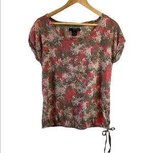 CALVIN KLEIN JEANS Cotton Coral&Tan Printed Shirt Sleeve Bubble Casual Top S