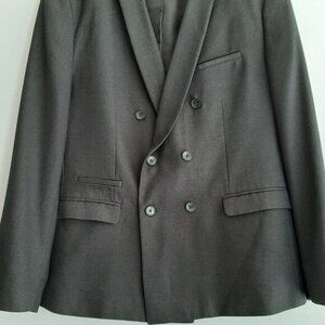 • Sophisticated and stylish double breasted button closure blazer in dark charcoal grey, fully lined with notch lapel and double back vent.