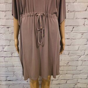 CALVIN KLEIN - Taupe pullover v-neck batwing dress with drawstring waist