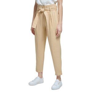 CALVIN KLEIN Women's Linen Blend High-Rise Tie-Waist Dress Pants, Beige NWT