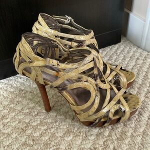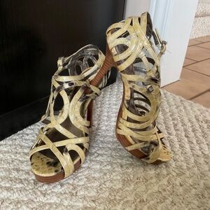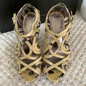 CALVIN KLEIN heels - DYLAN size 7M. Yellow/black python pattern. Strappy sandal.