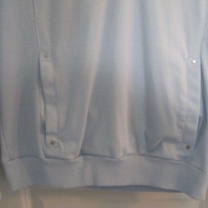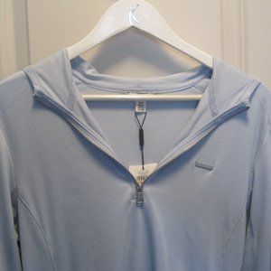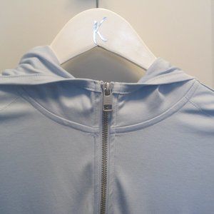 CALVIN KLEIN women’s, half zip-up light hoodie. Has 2 front pockets with metal studs, hood, and ribbing down the sides and sleeves. Really nice feeling material & nice baby blue color. New with tags. SIZE S