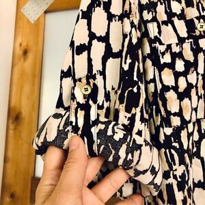 Calvin Klein Animal Print Rollup Long Sleeve Blouse / Sz L