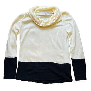 CALVIN Klein Black & Cream Colour Block Cowl Neck Knit Sweater SZ Medium