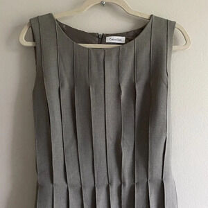 CALVIN Klein Gray Pleated Sleeveless Belted Fit & Flare Dress Size 12