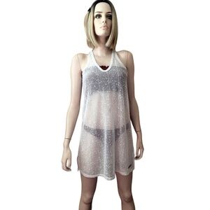 CALVIN Klein Sequin Swimsuit Bikini Coverup White V-Neck Shift Racerback Tank