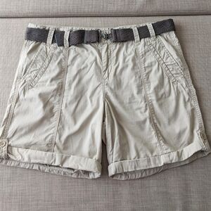 CALVIN Klein cotton safari belted shorts with pockets beige tan color size 10 B1