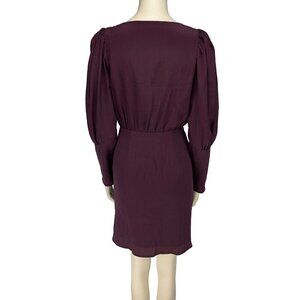 CAMAIEU French Satin Ruched Gatered Waist Long sleeves Eggplant Mini Dress sz 36