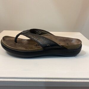 Preloved condition. This sandal is the original cork footbed sandal with leather upper and certainly not cheap to buy new. Very comfortable slip on sandal with support. Most cork style sandals have the dark footbed but the great thing is… no one can see it when you’re wearing it! Please see the condition of the sandals via pictures.