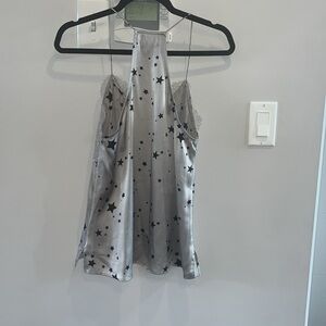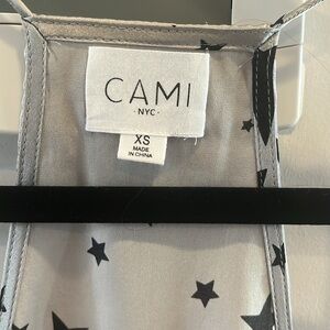 CAMI NYC Lace-Trimmed Star-Print Silk Top