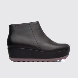 CAMPER Laika women’s leather black ankle boot violet platform soles zip up EU37