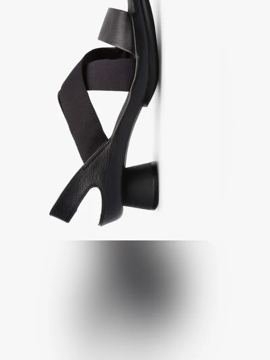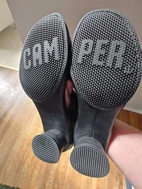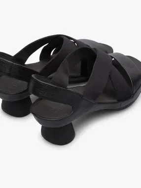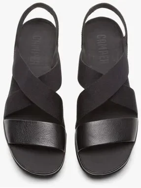Black Camper Sandals Leather and fabric with rubber soles. Excellent condition, only worn a few times. Round block heel.