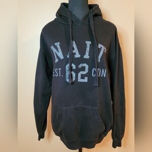 Campus One Spirit Wear NAIT (Northern Alberta Institute of Technology in Edmonton, Alberta) black hoodie. The front of the hoodie reads "NAIT EST. 62 CND" in white lettering. Front kangaroo pocket.