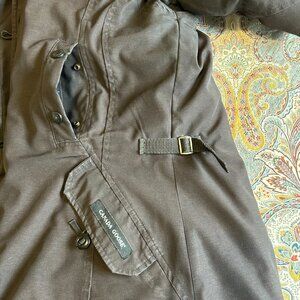 In very good used condition - minor fade on the black does not impact the comfort and wearability. Double pull zipper covered with button down placket. Four front pockets and adjustable straps at waist area, There was a zip on/off fur trim for the hood but this is missing. The hood is lined with faux fur fleece like fabric so you can still keep warm. Price is adjusted accordingly. Quality construction you expect from Canada Goose - stay warm for your outdoor winter activities !