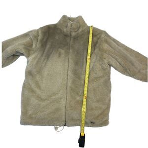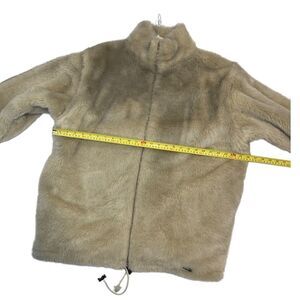 Gorgeous and super soft and warm. Very good condition with minor wear and piling on the interior. Not noticed when worn. Made in Quebec. Size tag has faded but it’s an XL oversized and can fit up to XXL. See measurements. Arms can be removed and jacket can turn in to your favourite vest. Very versatile. Fleece lined interior for warmth. Zip front. Shades of cream and beige. Gorgeous piece for the colder months.