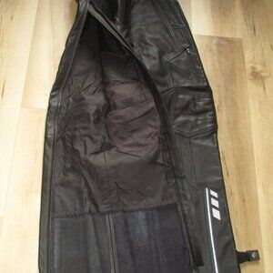 Up for sale is a pair of CAN-AM BRP MOTORCYCLE Woman's Heavy Genuine LEATHER Riding Pants Size 8 or I think is a small?. The pants are in almost new like condition. they measure from the top of the weist to the cuff 41 inches, the inseam is 31 inchesand the the weist across is 16 inches so about a size 32 weist. both legs unzip up to the weist. they are very heavy leater they weigh 4lbs 4 oz