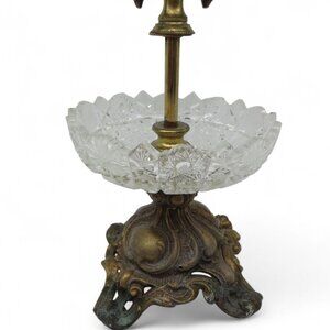 This elegant vintage candelabra combines the timeless appeal of brass with the delicate artistry of glass.