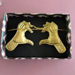 Gold-colored candle ornament with hands in the shape of a heart by Sissy-Boy. With these skewers you can easily decorate your candle by sticking them into the candle with the small pins. The hands are made of iron and have a very nice detailing. When you light the candle, it is important to stay close by while the candle is burning and to keep an eye on it to remove the skewers yourself before the hands fall out of the candle. The extra nice packaging also makes the candle ornament a nice gift idea! Please note: not suitable for the dishwasher.