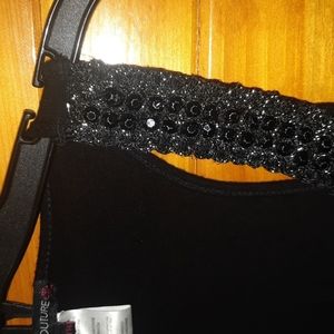 Black sleeveless top featuring embellished neckline and ruffled front. Racerback style. Size XL, 100% rayon. 26" shoulder to hem and 19" armpit to armpit.