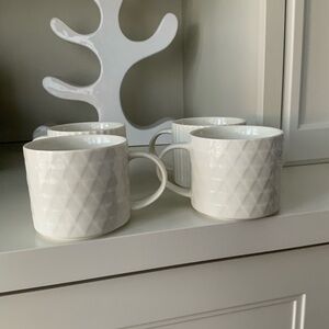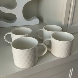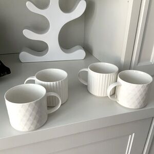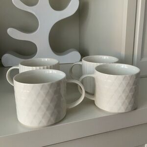 CANVAS Ceramic Textured Coffee Tea White Mugs X 4 Set Kitchen Round