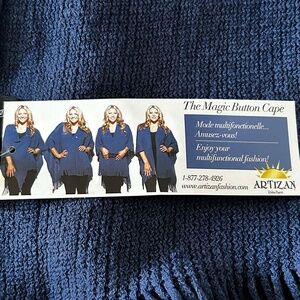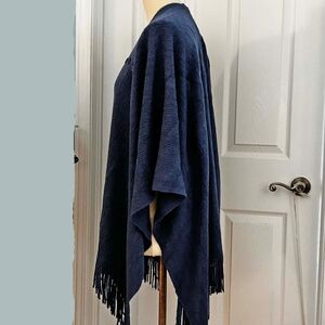 CAPE, MULTIFUNCTIONAL, BLUE, SZ WOMEN ONE SIZE, FRINGE ACCENTS, ACRYLIC, PULL OVER, ARTIZAN BY ROBIN BARRE, IN ORIGINAL BAG, TAG ON, NEW NO DAMAGE