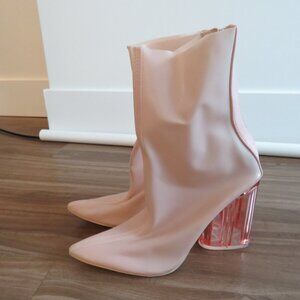 CAPE ROBBIN Birthday Suit Blush Pink Acrylic Heel Boots Booties - Women's Size US 8