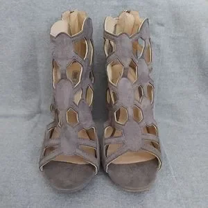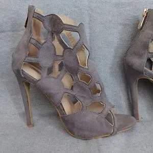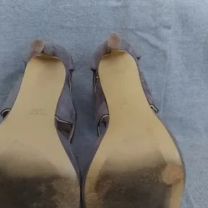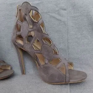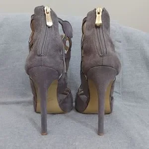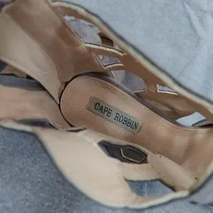 Sexy Cape Robbin stiletto. Zips up the back of heel. Some wear on bottom. Taupe color.