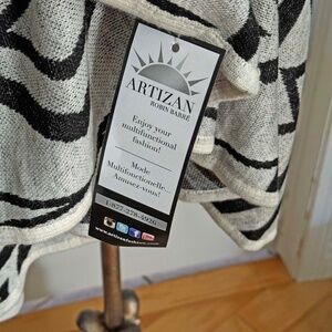CAPE, TWO TONE AZTEC, GREY/BLACK, ARTIZAN ROBIN BARRE, ONE SIZE, TAGS ON, NEVER WORN