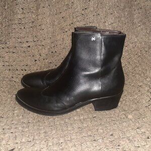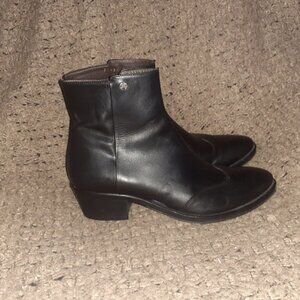 CAPEZZANI-Black Leather Wingtip Side Zip Booties-Sz 38-Excellent