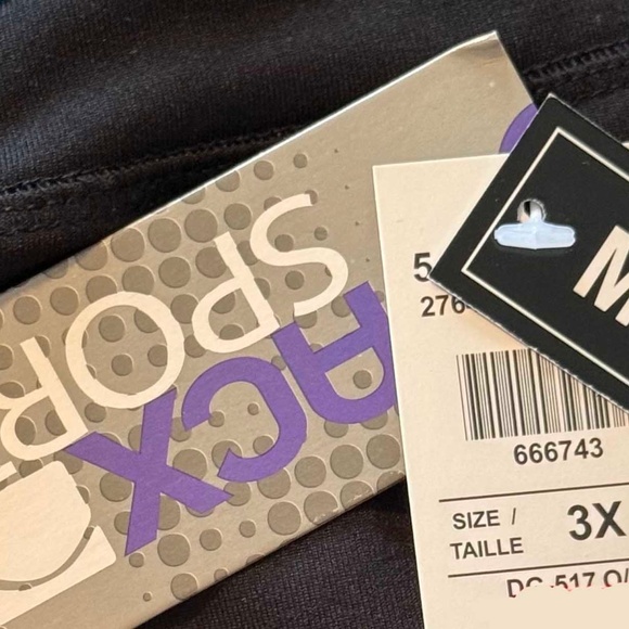 CAPRI, STRETCHY, BLACK WITH BLUE, SIZE 3X, POLYESTER SPANDEX, ACX SPORT PLUS, TAGS ON, NEVER WORN