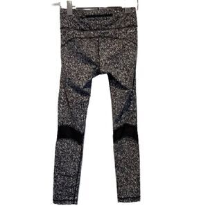 Pebbled pattern quick dry leggings with back zip pocket, mesh insert starting at knee , wrapping around front to hem.