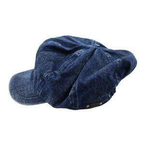 CARA PARK Newsboy Cabbie Visor Slouchy Dark Blue Denim Cap Hat