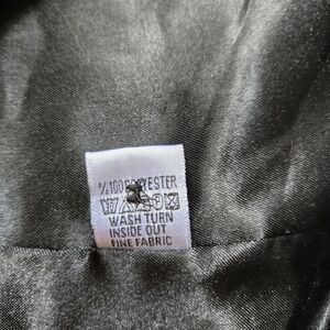 Lightweight jacket with a ruffle collar and full front button closure. Fully lined in a silky black.