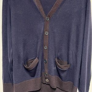 CARDIGAN Brand 100% Merino Wool Boyfriend Button Cardigan Navy/ Brown Sz L