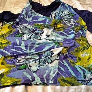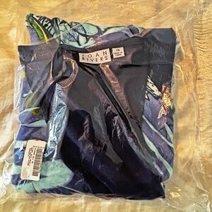 CARDIGAN, DRAPE FRONT, BLUE FLORAL MIX, SIZE 3X, LONG SLEEVES, LONG LENGTH, JOAN RIVERS, IN ORIGINAL BAG, TAG ON, NEVER WORN