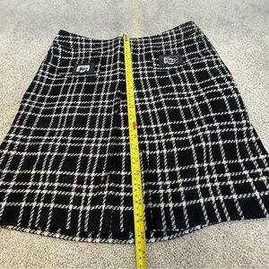 Carlisle Per Se black white tweed front pleat mini skirt Sz 10 NWOT