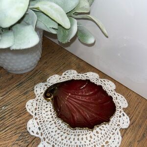 Elegant vintage leaf-shaped dish by Carlton Ware, from the iconic “Rouge Royale” collection. Deep red glaze with gold trim, and delicate swirl relief. Perfect as a trinket dish, for serving nuts, or as a sophisticated accent piece. Marked on the underside.