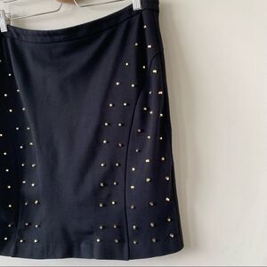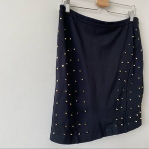 This is little mid-mini skirt is a classic black but is dressed up with beautiful gold tone studs!!