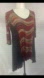 Tunic Top. Statement design by Carole Tremblay. Designer piece, Made in Canada π¨π¦. Bold pattern, flatter panels, 3/4 sleeves with lettuce trim, lace style insert back. The top is longer in the back for a flattering shark bite design. Retro 80βs inspired. stretchy Size Small-Medium. Good Used Condition GUC.