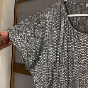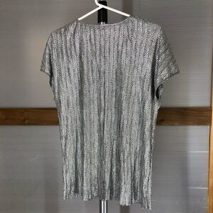 CAROLINA BELLE Metallic Silver Textured Short Sleeve Blouse Sz M