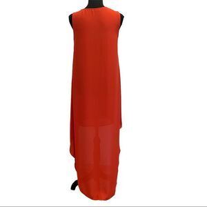 Carolina Belle red sleeveless flowy ruffle frill front midi dress Sz S