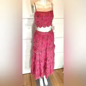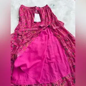 Vibrant pink tulip embroidered detailing dress