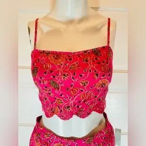 Cropped top with smocked back and adjustable straps