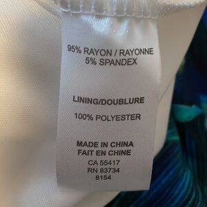 Features: Draped Neck with Faux Tee, Sleeveless, Abstract Botanical Print, Midi Length, Ruched Sides, Stretchy Material, Lined for Full Coverage, Empire Waist