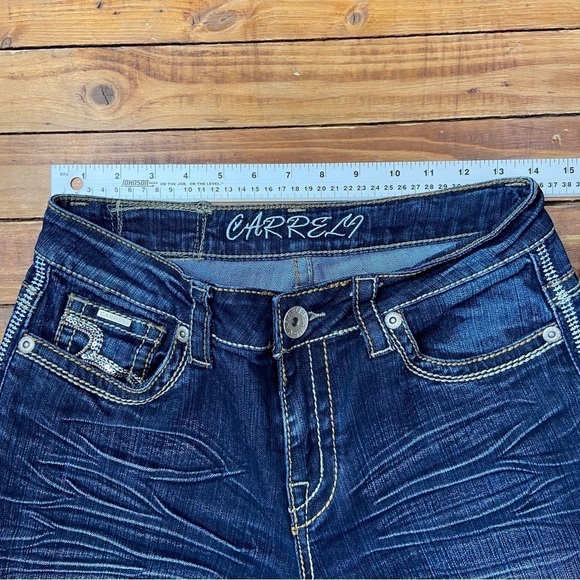 CARRELI blue jeans sequin mid rise tall flare leg wide size 30 coastal cowgirl