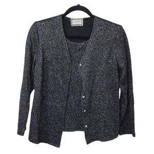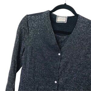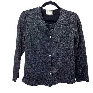 CARROLL REED Black Sparkle Button down layered women cardigan sweater, women size Medium. In excellent preowned slightly used condition with no flaws or damages. very unique and has a vintage look to it. Very soft and comfy material