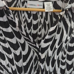 • Style: collard neck, button up blouse, zebra print, accordion style material, very stretchy