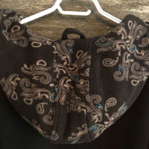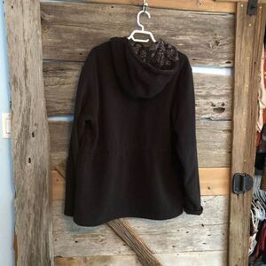 Black fleece, full zip, lined sweater jacket with drawstring waist